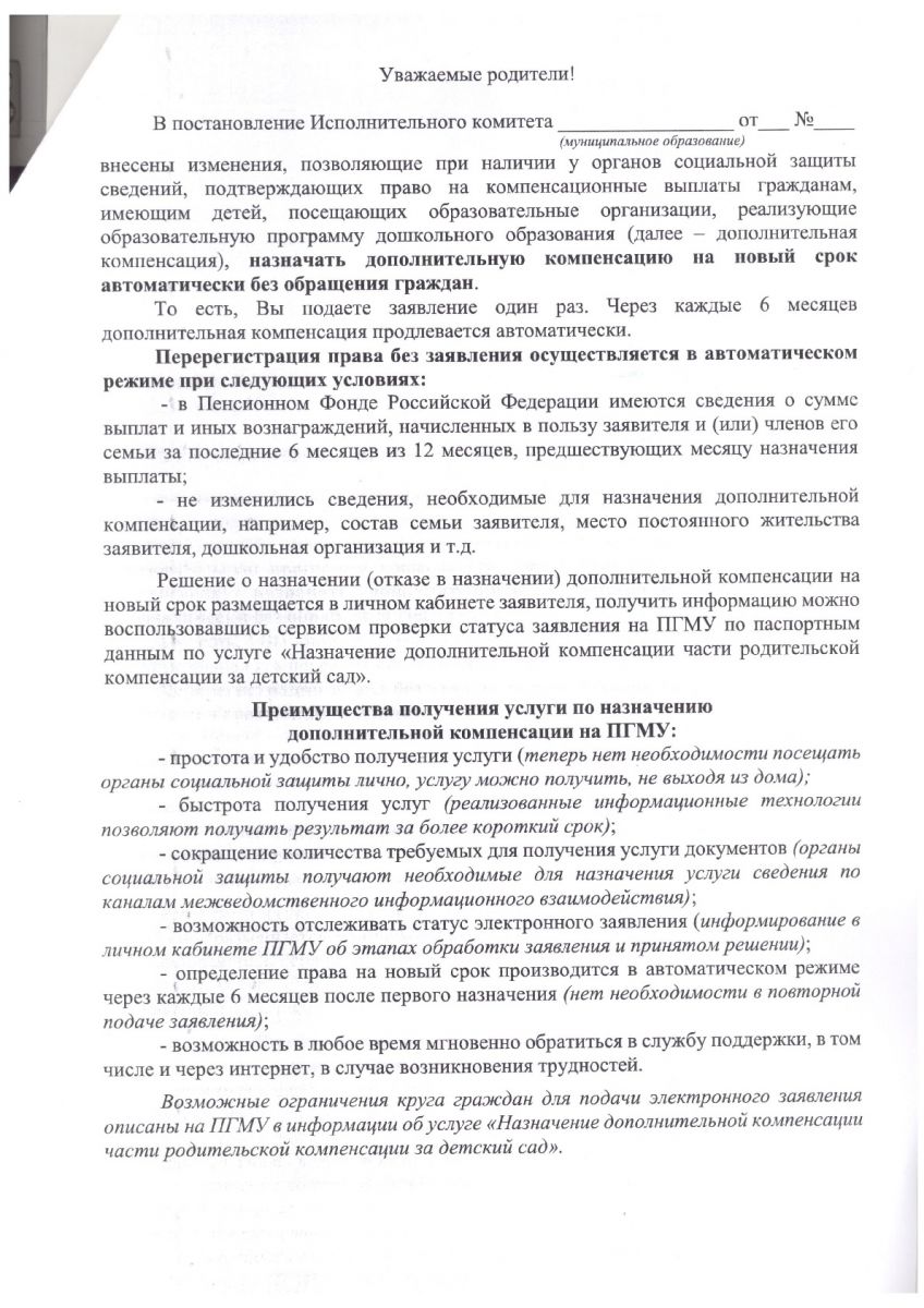 компенсация оплаты за детский сад 25.06.18