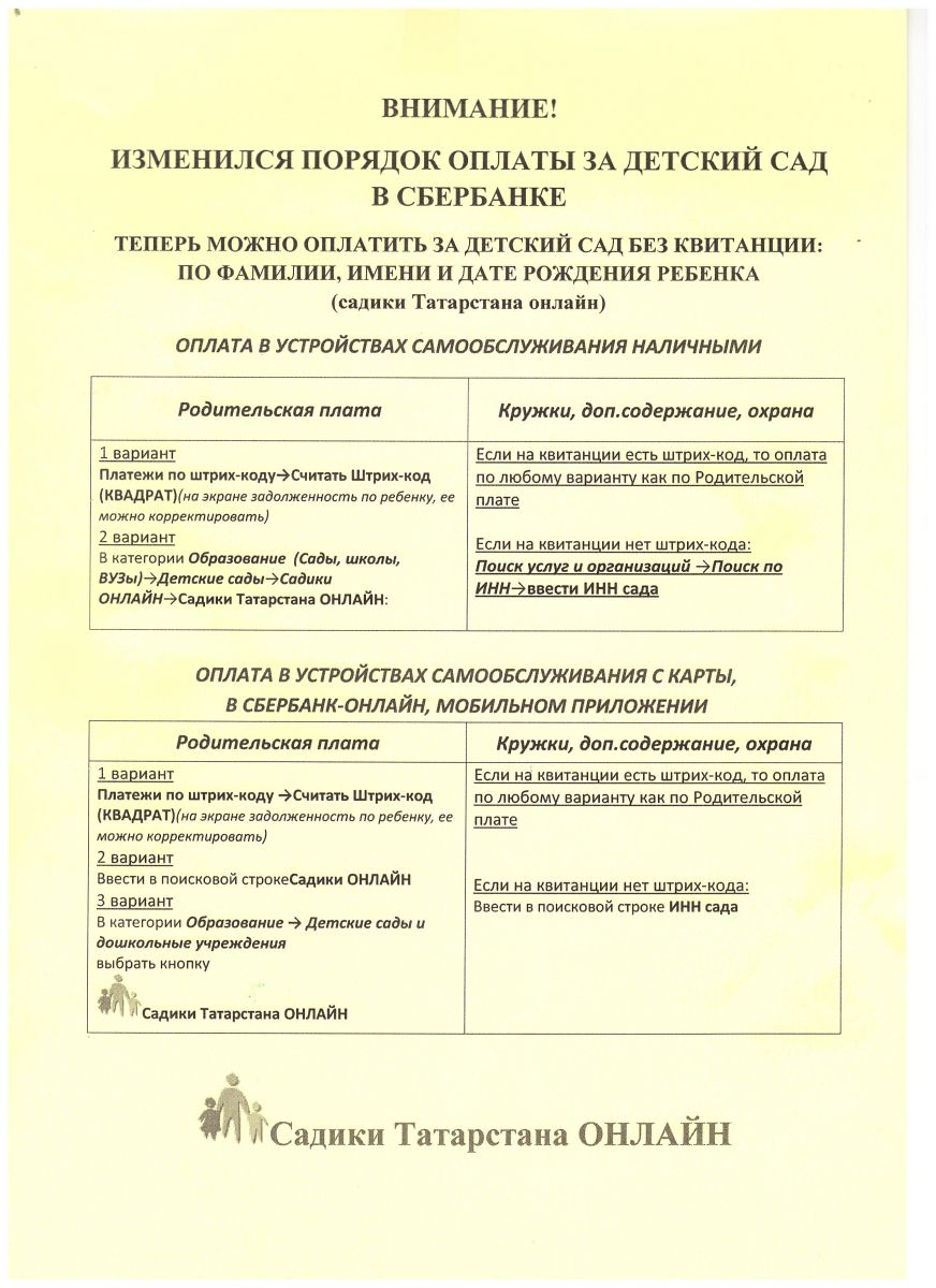 Изменение порядка оплаты за детский сад в Сбербанке