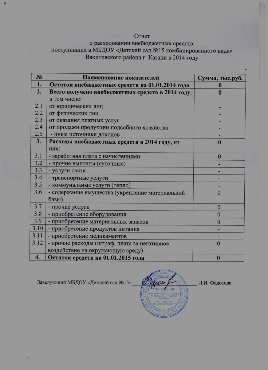 Отчёт о привлечении и расходовании внебюджетных средств - 2014г.