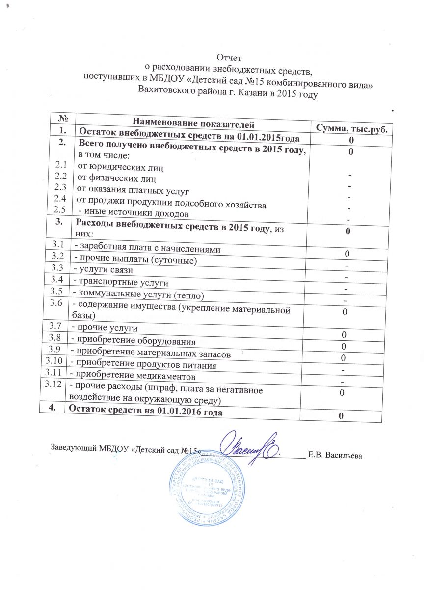 Отчёт о привлечении и расходовании внебюджетных средств - 2015г.
