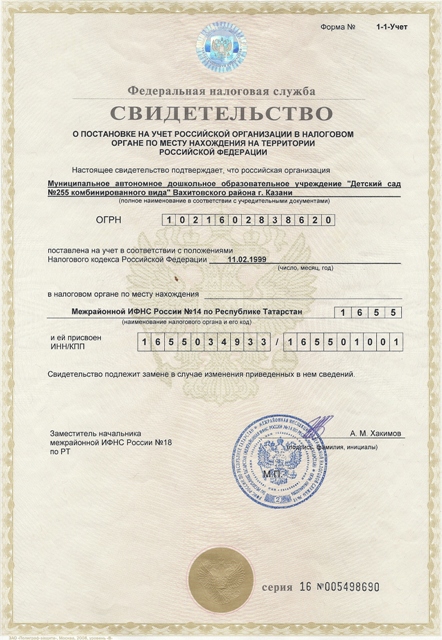 УСТАВ МБДОУ "Детский сад №255 комбинированного вида" Вахитовского района г. Казани