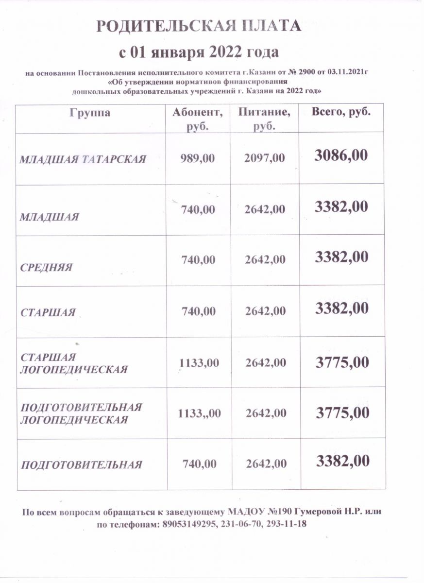 Информация о родительской плате с 01.01.2022 28.12.2021