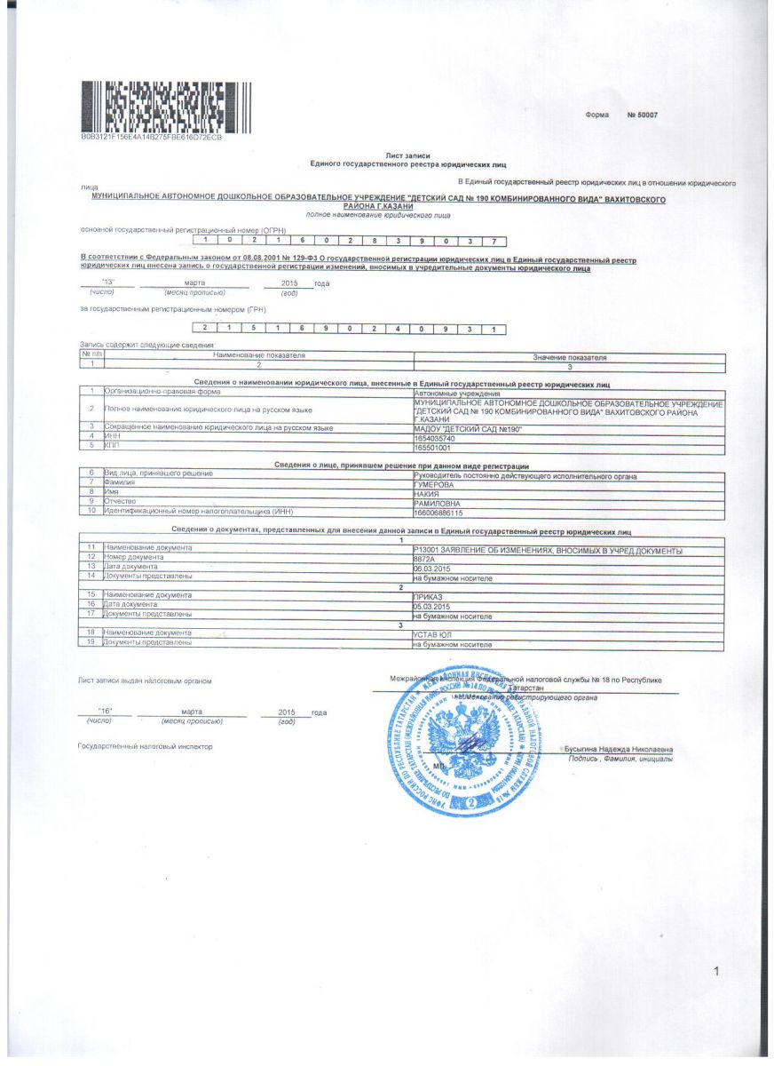 Устав МАДОУ "Детский сад № 190", 2019 год