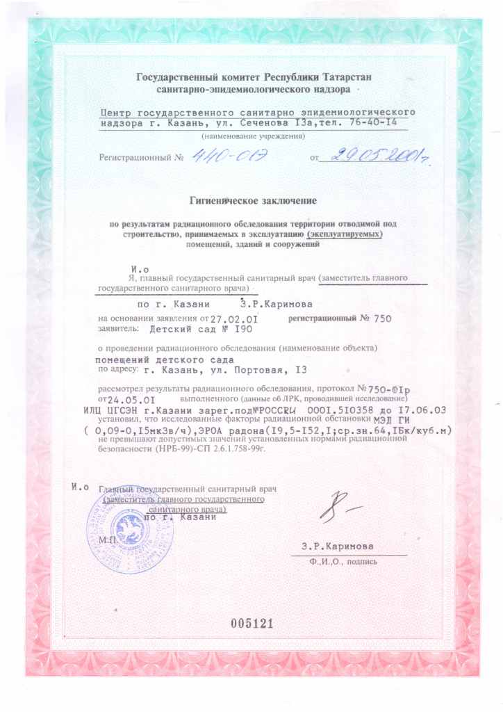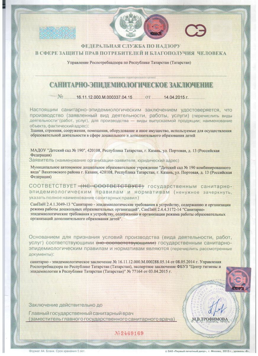 Санитарно-эпидемиологическое заключение от 14.04.2015