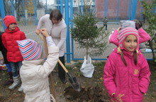 14.10.13. Выпускники на школьном дворе посадили 10 рябинок.