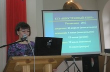 24 апреля 2012г. проведен семинар-практикум для учителей английского языка школ Вахитовского и Приволжского районов. С изменениями в аспектах и критериях оценки заданий итоговой аттестации в форме ГИА и ЕГЭ выступила Зиятдинова Юлия Надировна, кандидат педагогических наук, доцент, заведующая кафедрой иностранных языков в профессиональной коммуникации, начальник отдела международных связей ФГБОУ ВПО «Казанский национальный исследовательский технологический университет», председатель республиканской предметной комиссии ЕГЭ «Английский язык», ГИА «Английский язык». -