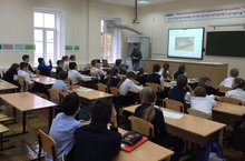 Он рассказал детям про эволюцию динозавров. А также о том, что прямым предком человека является сеймурия, и о том, что многие динозавры (в том числе известный тираннозавр) были покрыты перьями. Пятиклассники вместе со своим учителем биологии Инной Владимировной тоже подготовились к уроку. Дети принесли с собой в школу изображения ранее живших существ, которых больше нет на Земле. Вместе с ученым школьники разместили свои домашние заготовки на геохронологической шкале. -