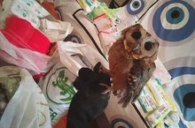 Центр реабилитации хищных животных выражает огромную благодарность учащимся 4 В класса школы № 18 за все собранные необходимые расходные материалы: коробки, бинты, инсулиновые шприцы и дорогие лекарства. На фото Ошейниковая сова «Ботула».