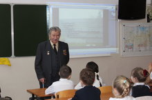 Классный час. Встреча с ветераном Великой Отечественной войны полковником Иванов ым Василием Арсентьевичем. Участник Сталинградской битвы, Курской дуги, форсирование Днепра.
