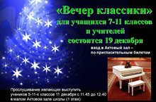 «Вечер классики» для учащихся 7-11 классов и учителей состоится 19 декабря.