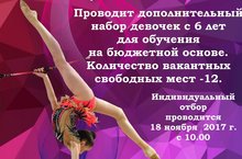 СДЮСШОР "Грация" дополнительно проводит набор девочек 25.10.2017