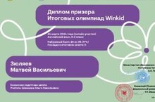 Ученики Зюляев Матвей 5а, Башаров Александр 8а- стали Призерами итоговой олимпиады по английскому языку Winkid. 29.03.2024