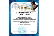 Тридцатого марта ученик 11-го класса Хайруллин Ильгиз (научный руководитель - учитель татарского языка и литературы Савдаханова Эмма Булатовна) достойно выступил в Поволжской научной конференции имени Лобачевского с докладом в секции татарской литературы, проведённой на базе КФУ. Поздравляем!