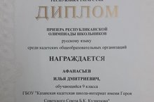 Афанасьев Илья обучающийся 9 класса -призер республиканской олимпиады школьников.