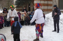 Сегодня на территории детского сада все дети и взрослые провожали Зиму и встречали Весну вместе с Масленицей. Водили веселые хороводы, играли со скоморохами, танцевали и угощались вкусными блинами. У всех было очень хорошее настроение.