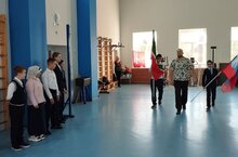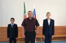 Церемония торжественного поднятия Государственного флага Российской Федерации под гимн нашей страны.