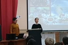Студенты Института международных отношений Высшей школы исторических наук и всемирного культурного наследия рассказывали о Великой Отечественной войне, о тяготах того времени, об участии в этой войне детей, жен, матерей. Показали как проходил первый парад в 1945 году и в наши дни. Почтили память солдат минутой молчания.