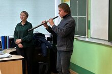 11.12. 2023 прошло камерное (кабинетное) знакомство шестиклассников (кл.рук. О.В. Каштанова и Е.А. Дроздова) с музыкальным инструментом – гобоем, как одним из солирующих в составе симфонического и оперного академических оркестров мира. Знакомство с гобоем, как инструментом «голоса души и мира» было подготовлено и проведено музыковедом Галиной Исаевной Чугуновой, а иллюстратором приглашён Андрей Платонов , студент кафедры деревянно-духовых инструментов КГК им. Н.Жиганова, класс доцента А.А. Бессонова. Слушатели внимательно следили за исполнителем, наблюдая за его руками, бегающими по мельхиоровым клапанам, и дыханием, меняющемся от разнообразия задач – играть лирическую мелодию или быстрые пассажи, как бы соревнуясь с легкостью звучания флейты. Уточняющий рассказ исполнителя о себе как гобоисте, нежное отношение его к инструменту, вызвало у аудитории искреннее уважение и доверие к исполнителю. Большой концерт из сочинений для гобоя представят студенты класса А.А. Бессонова 18.12.23 в 13:15 в Актовом зале школы. Приглашаются все желающие