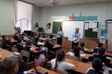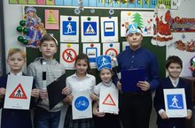 Дети школьного возраста-это особая категория пешеходов и пассажиров. К ним нельзя подходить с той же меркой, как и взрослым, поэтому возникает необходимость создания определенной системы по ознакомлению детей с ПДД и привития им навыков безопасного поведения на дорогах и улицах.9 января учащиеся 1 Б класса встретились с инспектором по пропаганде безопасности дорожного движения. Из беседы учащиеся узнали правила поведения в общественном транспорте и вне его, повторили знаки дорожного движения. -