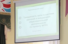 24 марта прошел педагогический совет на тему «Триединость цели в системе урочной и внеурочной образовательной деятельности по проекту ФГОС». С докладами выступили директор школы Г.А. Назипова, научный руководитель С.И. Русинова, учителя Дроздова Е.А, Кузовкова С.Г, Каштанова О.В., Голосова И.В., Кулагина М.В., Щавлева А.Н. Были затронуты вопросы, касающиеся предметного обучения, методической компетентности обучающего в развивающем обучении, формирования личностного статуса и гражданского самосознания у обучаемых. Разговор шел и о значимости внеурочной деятельности в системе образования по ФГОС, о сотрудничестве обучающих, обучаемых и родительской общественности. Все выступающие подчеркивали актуальность и важность систематизации теоретической подготовки и практической деятельности участников образовательной деятельности в рамках ФГОС.
