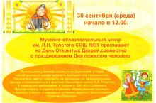 Музейно-образовательный центр имени Л.Н.Толстого СОШ №39 приглашает на День Открытых Дверей, совместно с празднованием Дня пожилого человека.