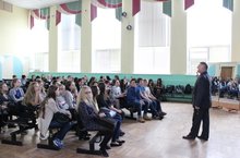 Сегодня в школе прошла акция "коррупции -нет!", на которой в игровой командной форме говорилось и делалось на злободневную тему. В акции принимали участие солидные чиновники Петухов А.Н. - сотрудник антикоррупционного управления при президенте РТ, помощник мэра по антикоррупционной политике Галеев Н.Р., бывший ученик нашей школы, выпускник 2004 г, представители МО и Н РТ.