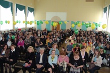 Весенний характер был передан солнечным колоритом оформления стены и зала.