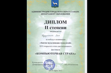 23-24 марта 2012 года в г. Самара прошел XVI международный фестиваль "Компьютерная страна", в котором ученица 8 А класса школы №39 Нуруллина Лия заняла II место в номинации "Знаток мультимедиа технологий".