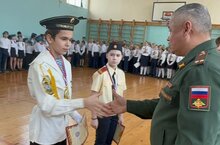 В состав жюри входил неожиданный гость в нашей школе - преподаватель ОБЖ и ОВП Казанского Суворовского училища, подполковник Гизатуллин Р.Ш. Он пришел не с пустыми руками, а с призами от училища для победителей - интересными книгами об истории российской армии, которые и были торжественно вручены отличившимся в смотре.