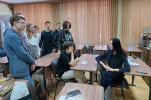 Долго не отпускали 10-тиклассники переводчика-синхрониста Марину Закрутаеву. Ребята хотели узнать, как и где можно научиться переводить синхронно и последовательно. Являясь востребованным специалистом, Марина работала с президентом Уганды на саммите «Россия - Африка», канадским писателем и филантропом Джоном Кехо, доктором нейрохирургом Фераза аль-Цаином, итальянским генеральным консулом Франческо Форте, футболистом Рональдиньо, японским профессором по микробиологии Хироши Миядзаки, австрийским шеф-поваром ресторана Petzold и многими другими. Марина ответила на все вопросы ребят, рассказала о специфике профессии, и еще раз подтвердила, что владение иностранными языками открывает двери в мир! Встреча во всемирный день английского языка в рамках профориентационной работы прошла отлично!