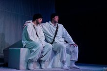 Театр на Булаке. В небольшом уютном зале был показан спектакль «Зима». Автор трагикомедии Евгений Гришковец, режиссер Рустам Фаткуллин. Это новый взгляд на театральное представление. Два совсем юных солдата,