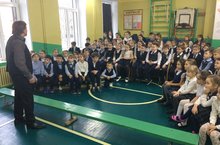 4 февраля для ребят начальной школы состоялся важный разговор о войне, о Великой Победе, о мужестве и подвигах маленьких граждан нашей Родины в то далекое время, когда пришла беда. В рамках акции «100 дней до Победы» прошла встреча с актером Рустемом Гайнуллиным, давним другом нашей школы. На примере знаменитой «Сказки о Военной Тайне, Мальчише-Кибальчише и его твердом слове» Аркадия Гайдара до понимания современных школьников доводились такие серьезные понятия, как честь, долг перед Родиной, самопожертвование, предательство, вечная слава, патриотизм.