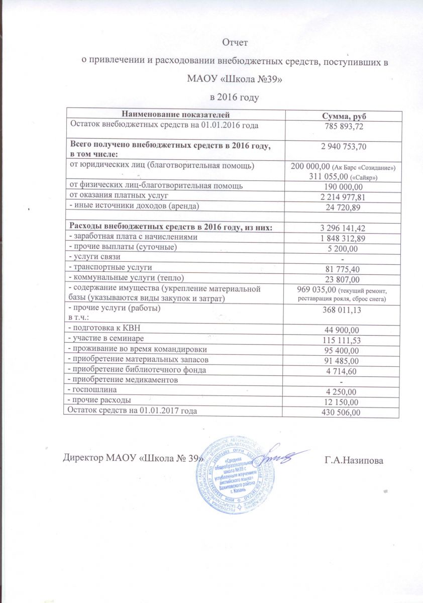 Отчет о привлечении и расходовании внебюджетных средств за 2016 год