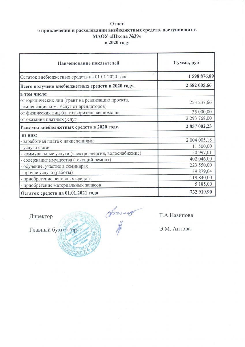 Отчет о привлечении и расходовании внебюджетных средств за 2020 год