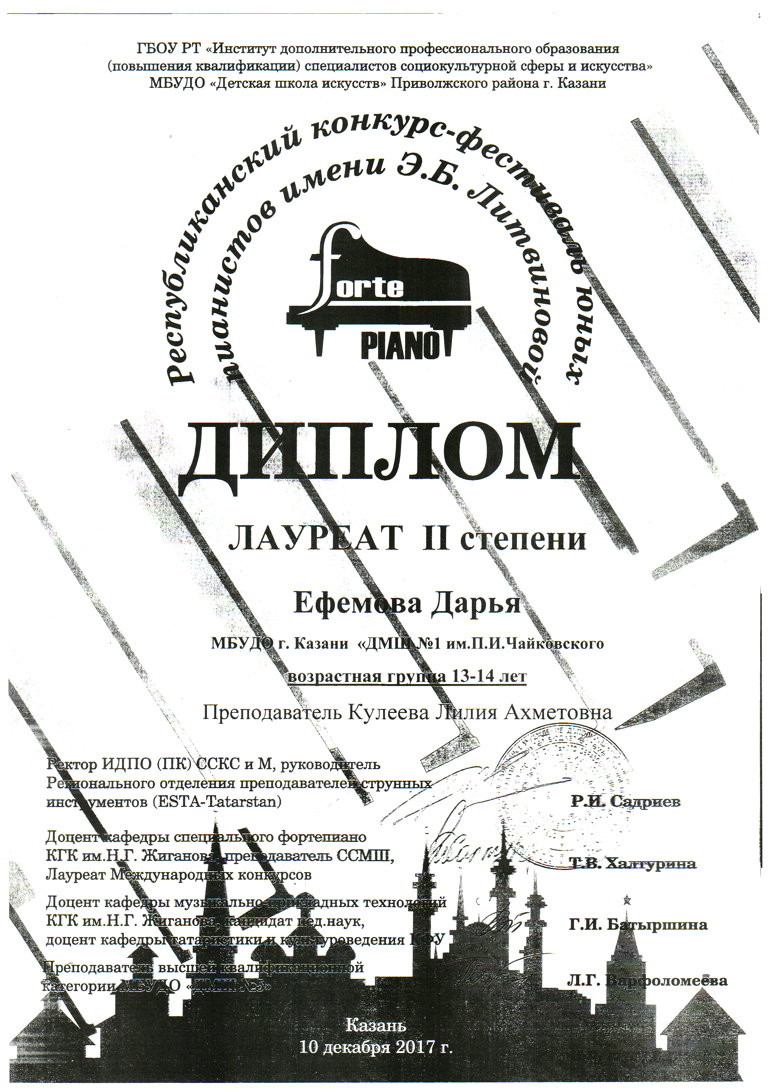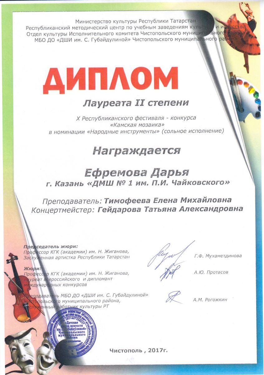 Х Республиканский фестиваль-конкурс "Камская мозаика" - Ефремова Дарья, Лауреат II степени;