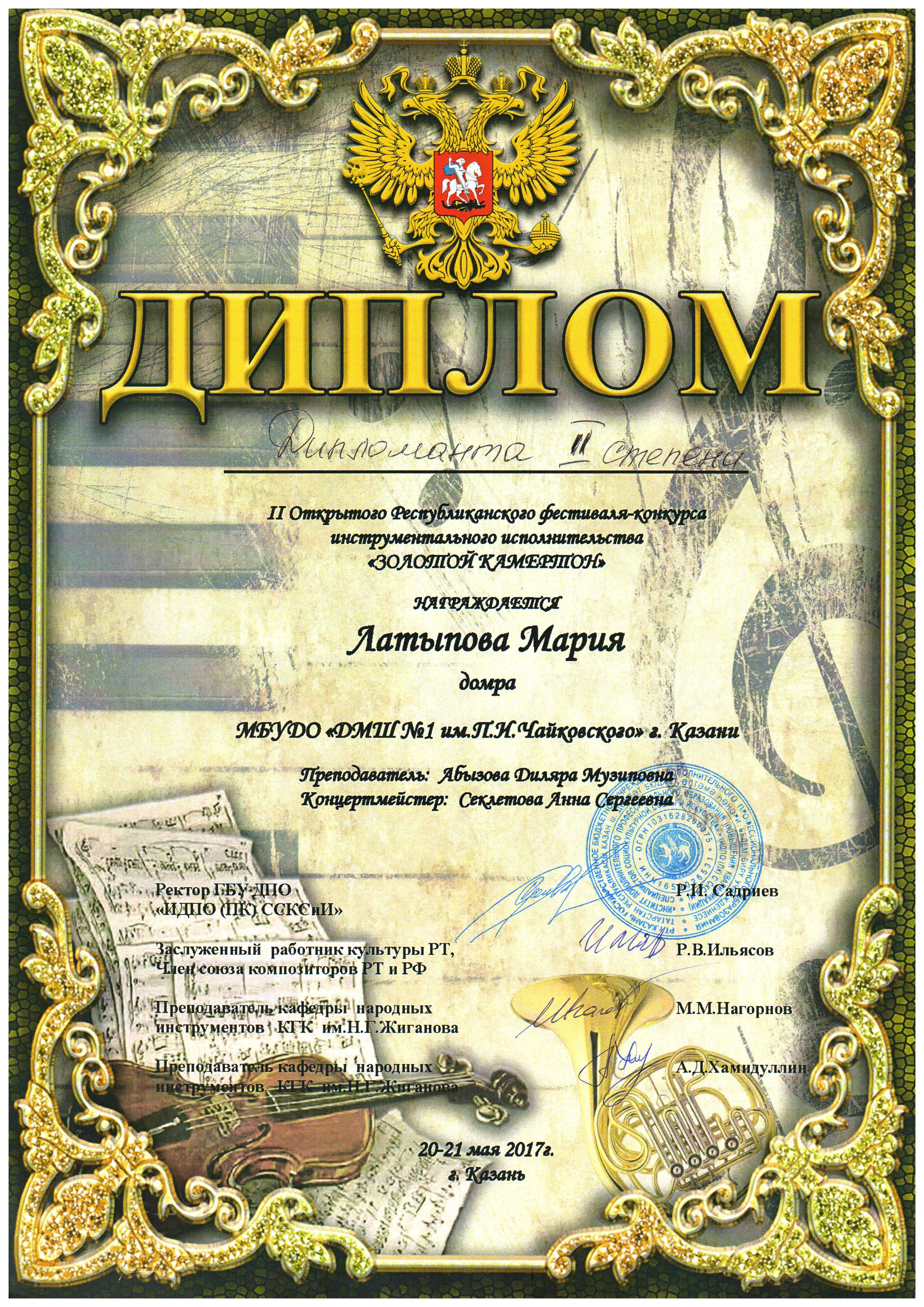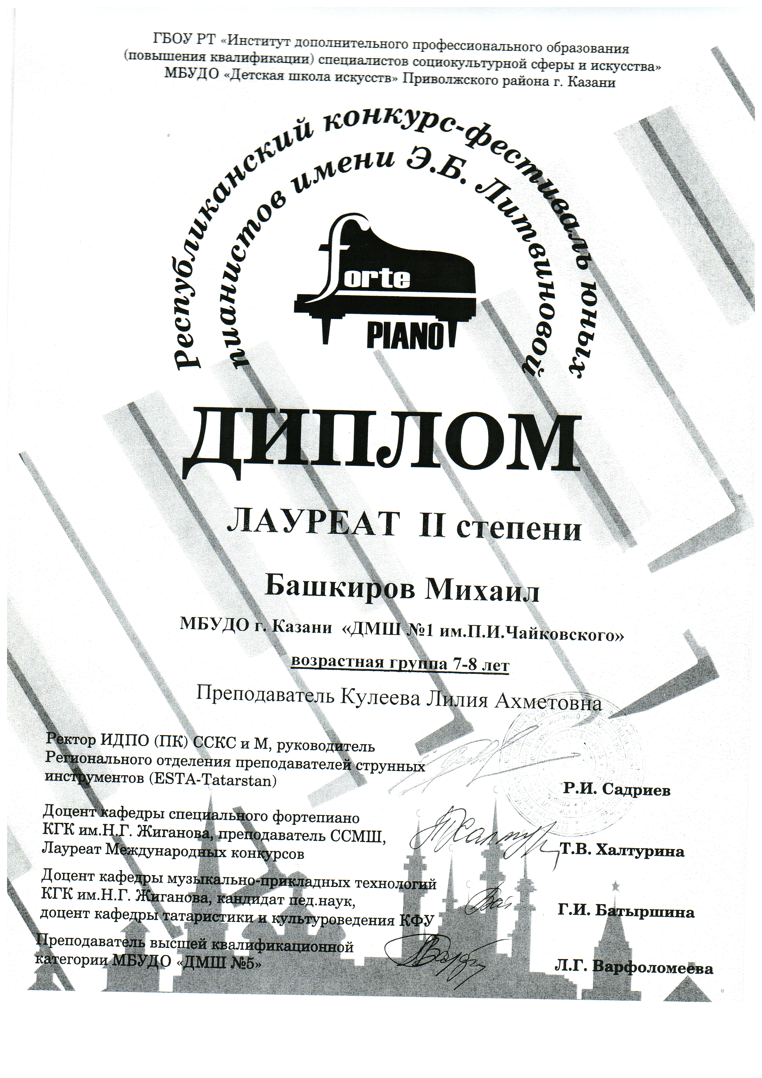 | Короткое название: | МБУДО г.Казани "Детская музыкальная школа №1 им. П.И. Чайковского" |