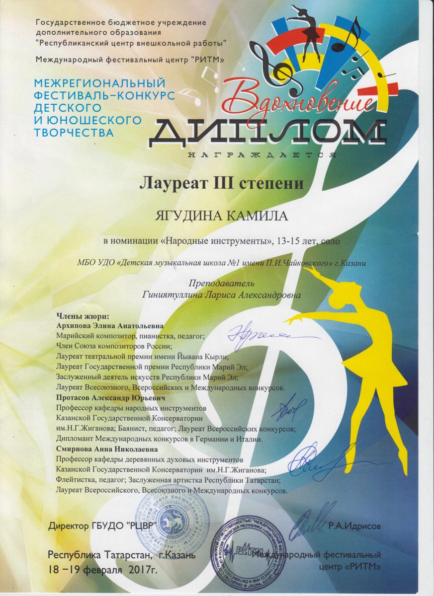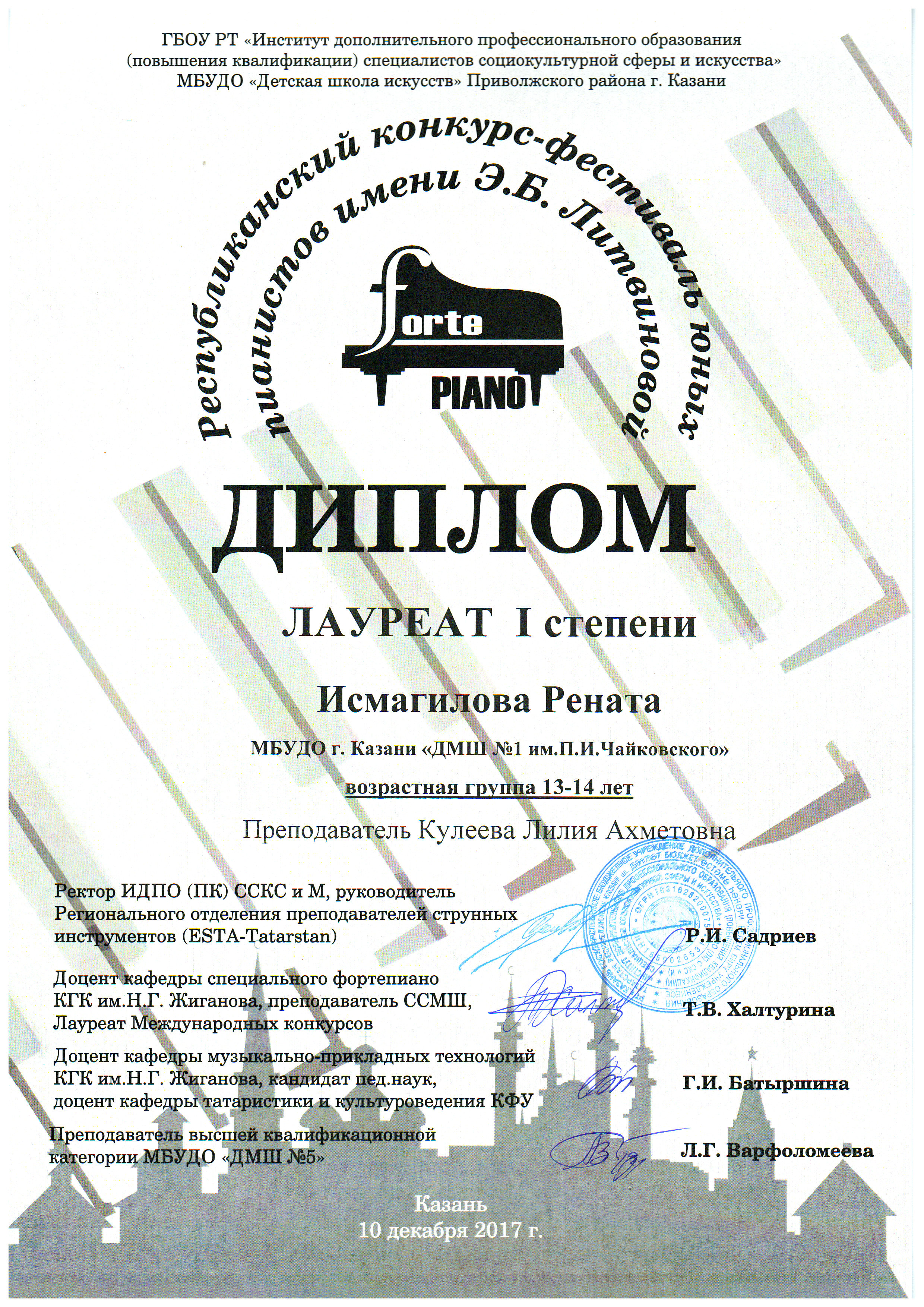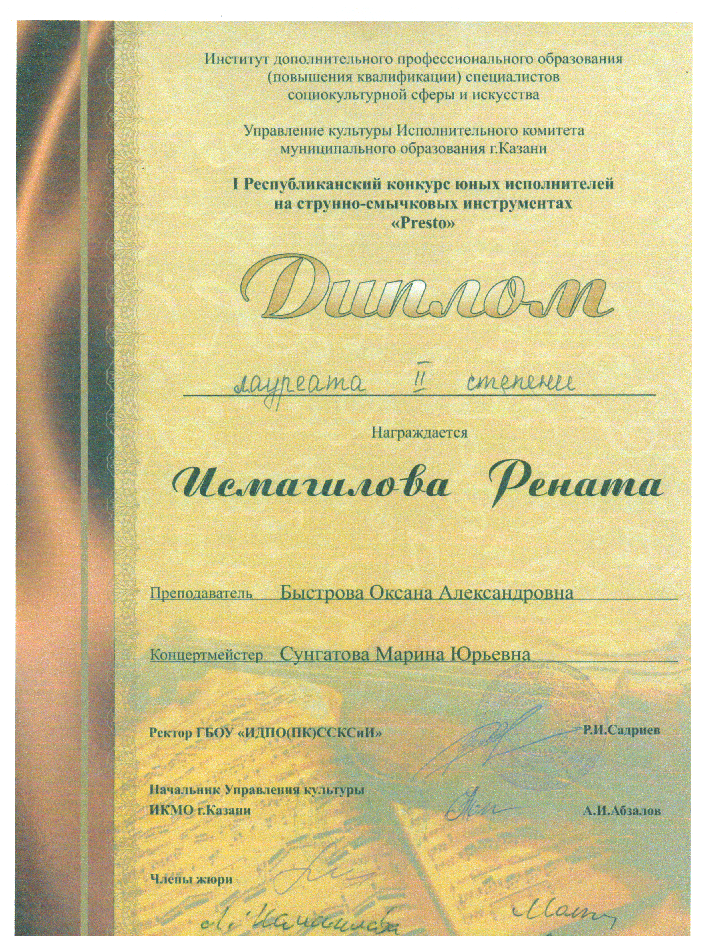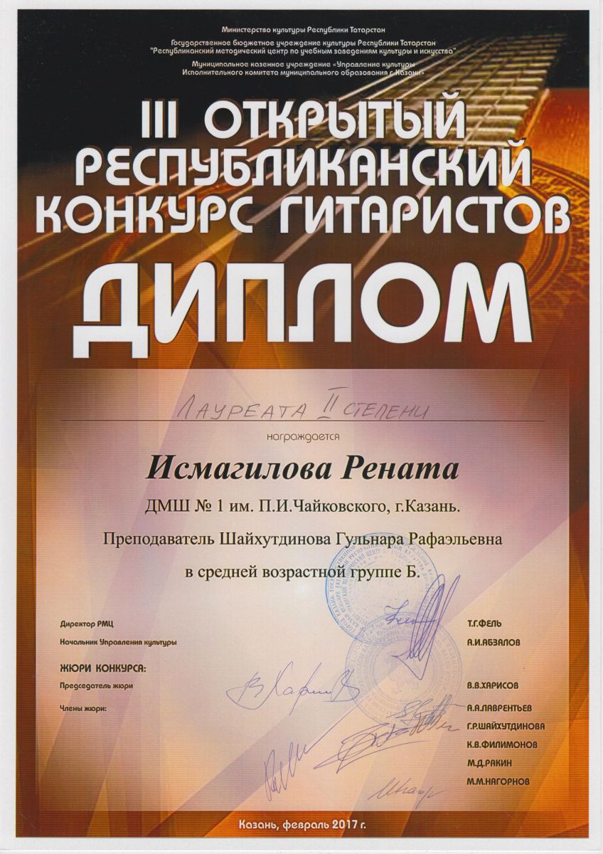 III Открытый Республиканский конкурс гитаристов - Исмагилова Рената, Лауреат II степени;