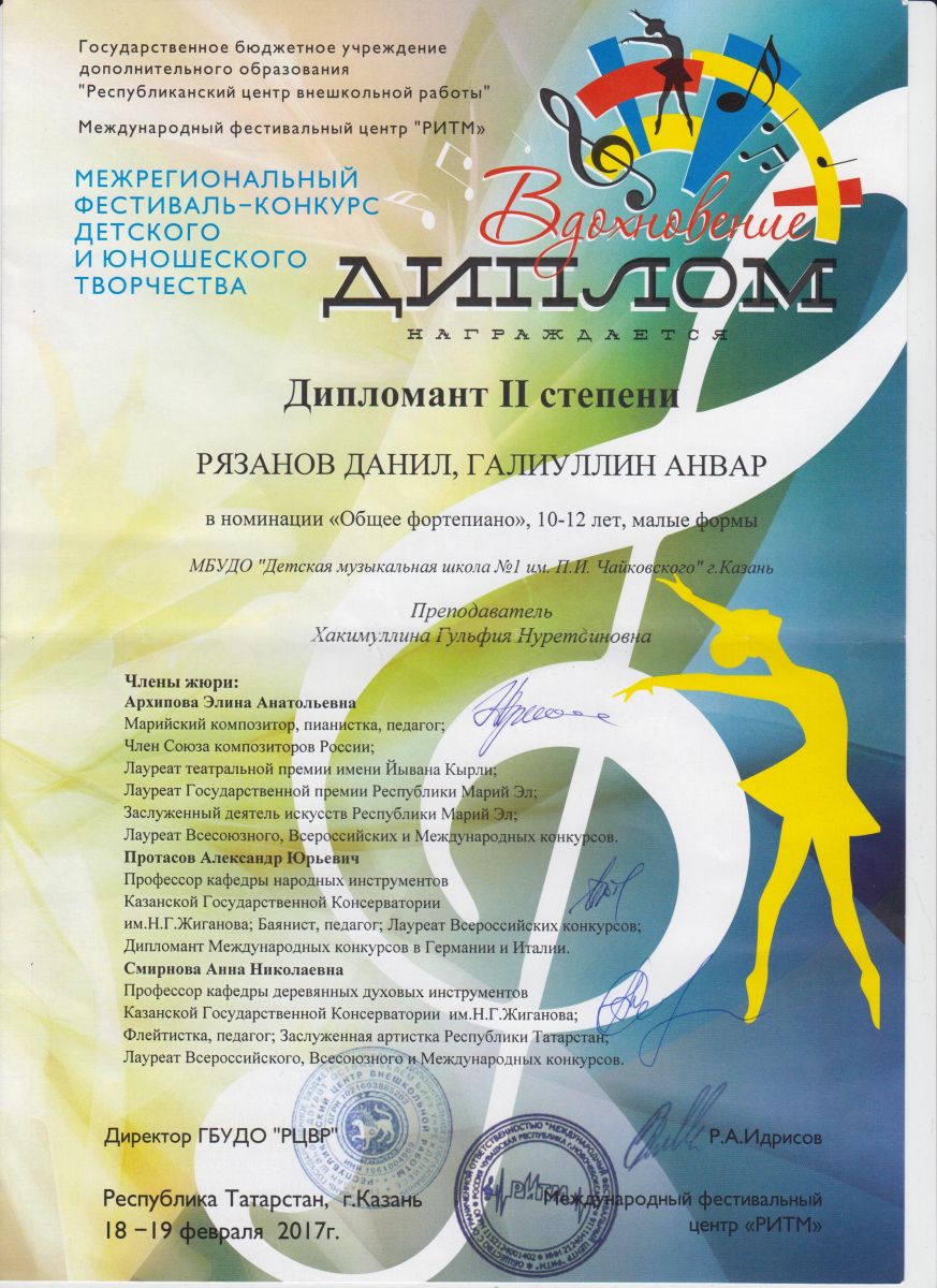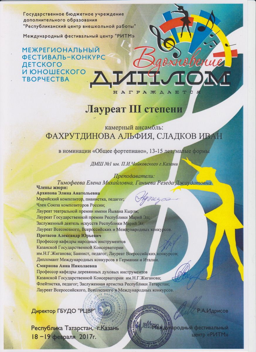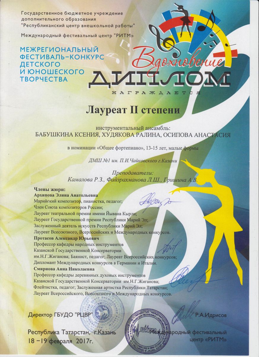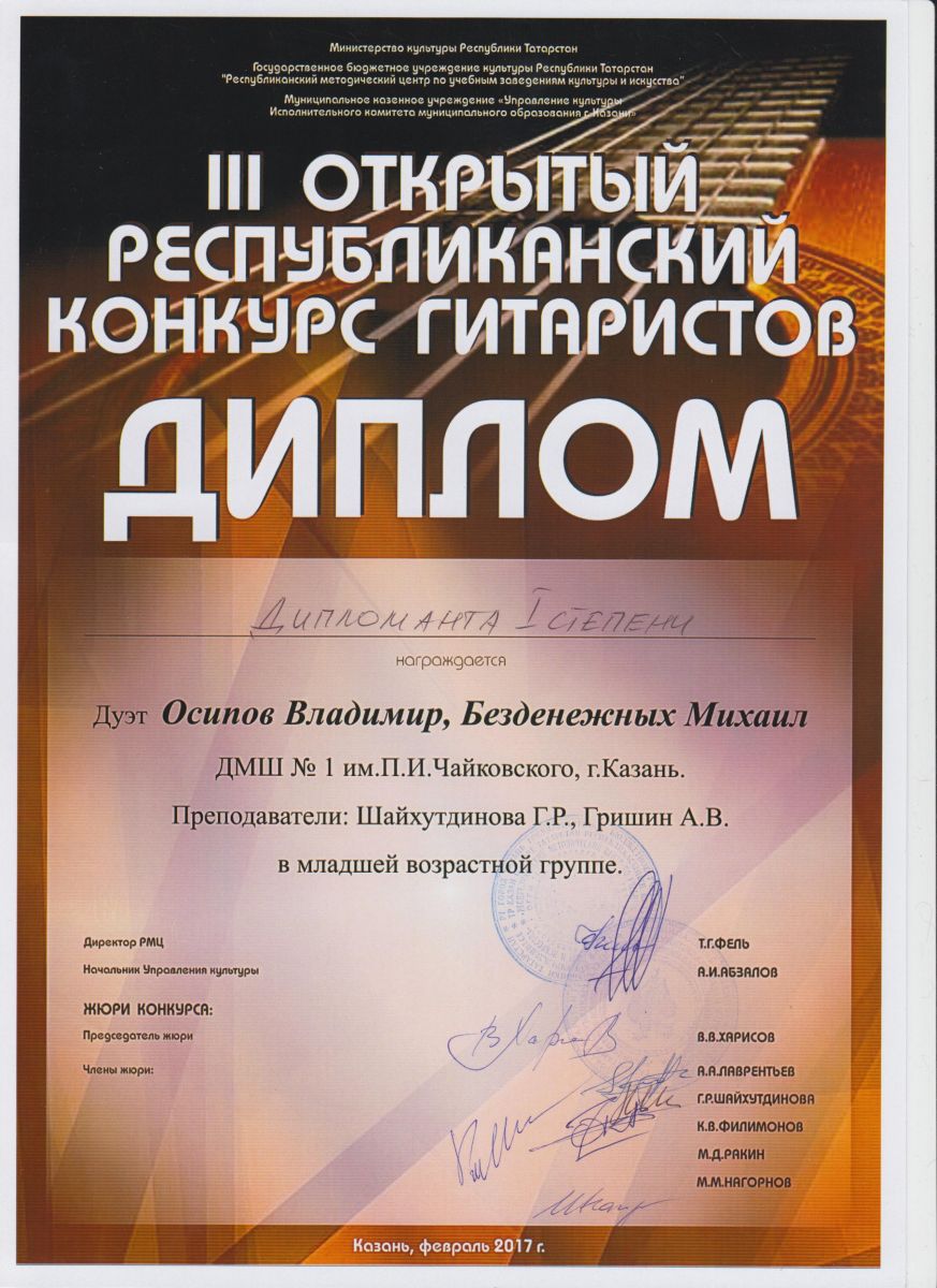 III Открытый Республиканский конкурс гитаристов - Дуэт Осипов-Безденежных, Дипломант I степени;