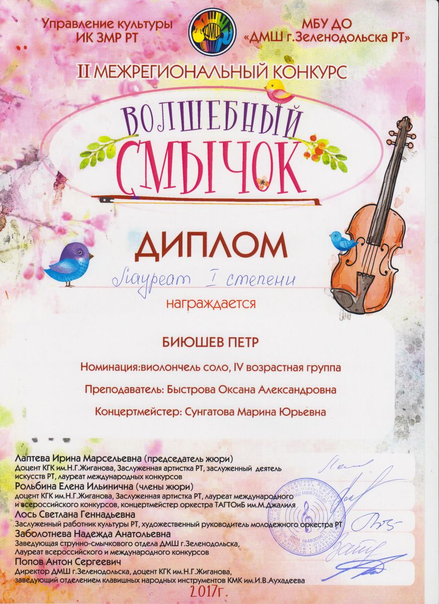 II Межрегиональный конкурс "Волшебный смычок" - Биюшев Пётр, Лауреат I степени;