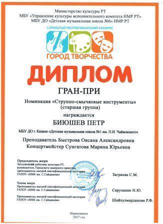 I Открытый Республиканский конкурс "Город творчества" - Биюшев Пётр, Гран-при;