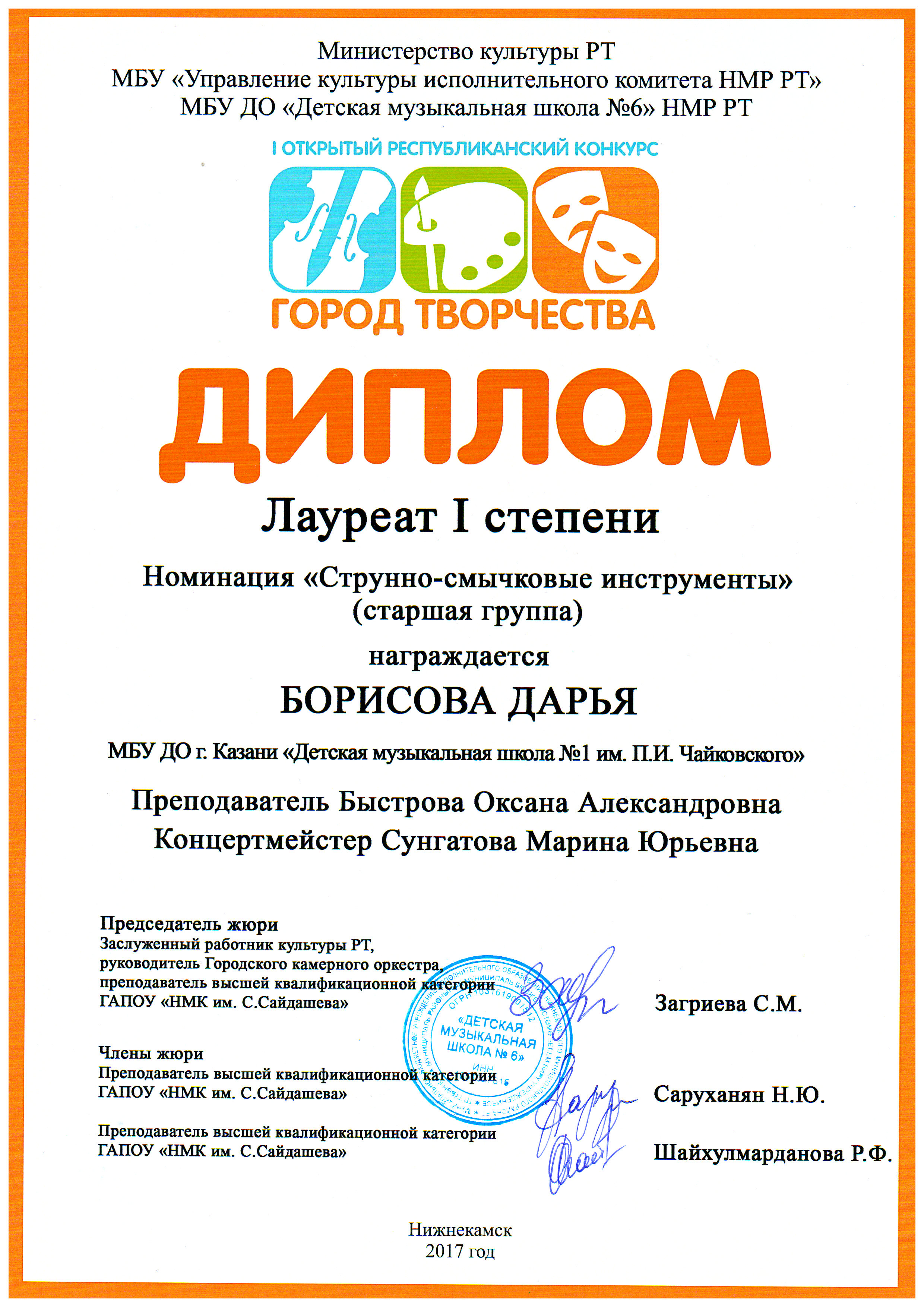 I Открытый Республиканский конкурс "Город творчества" - Борисова Дарья, Лауреат I степени;