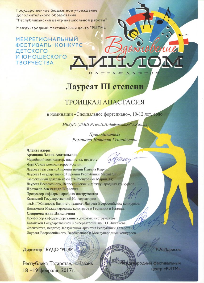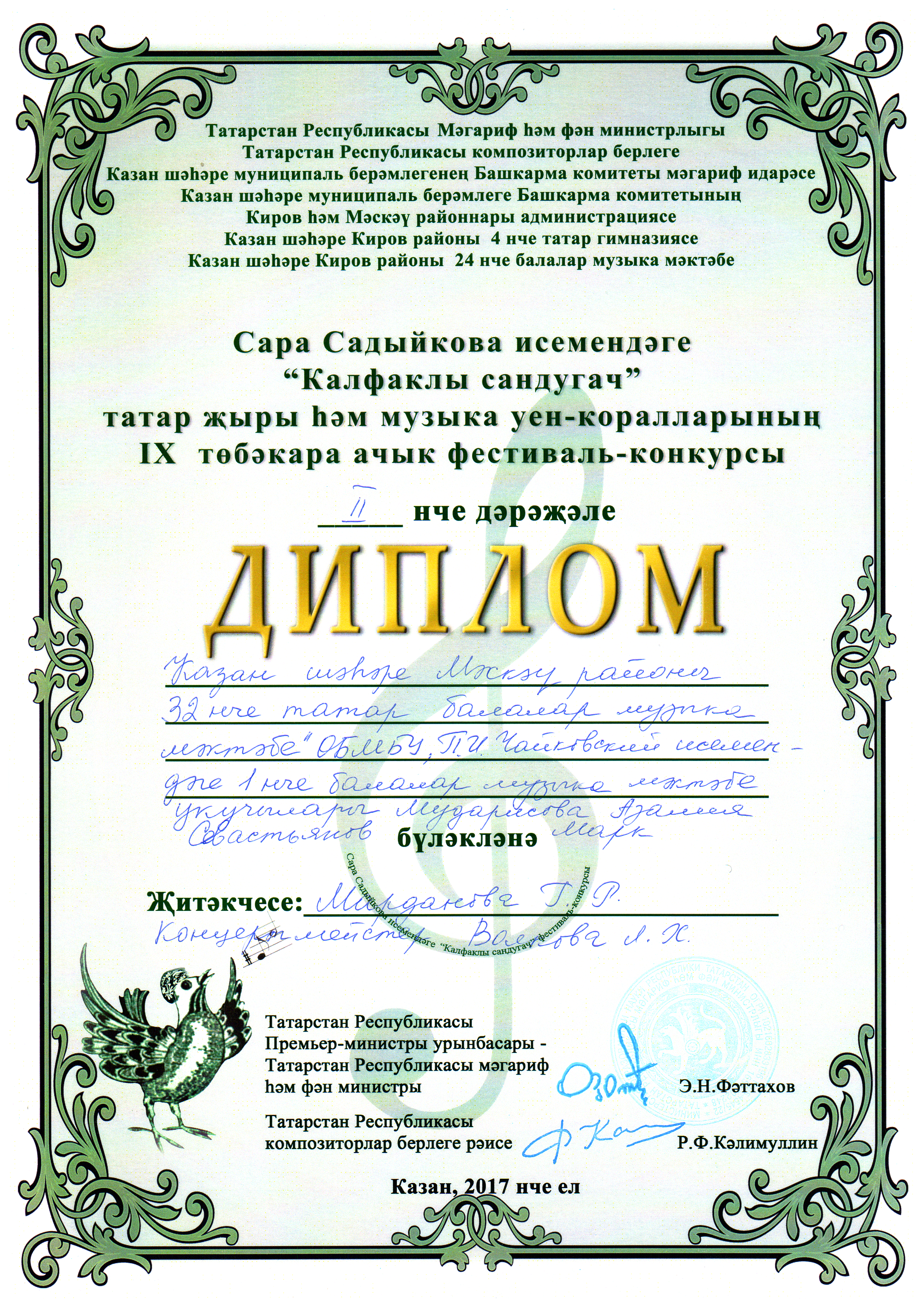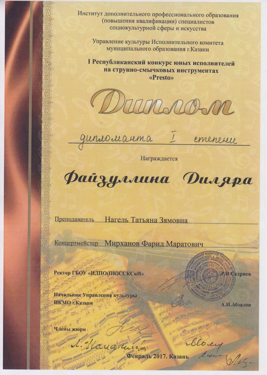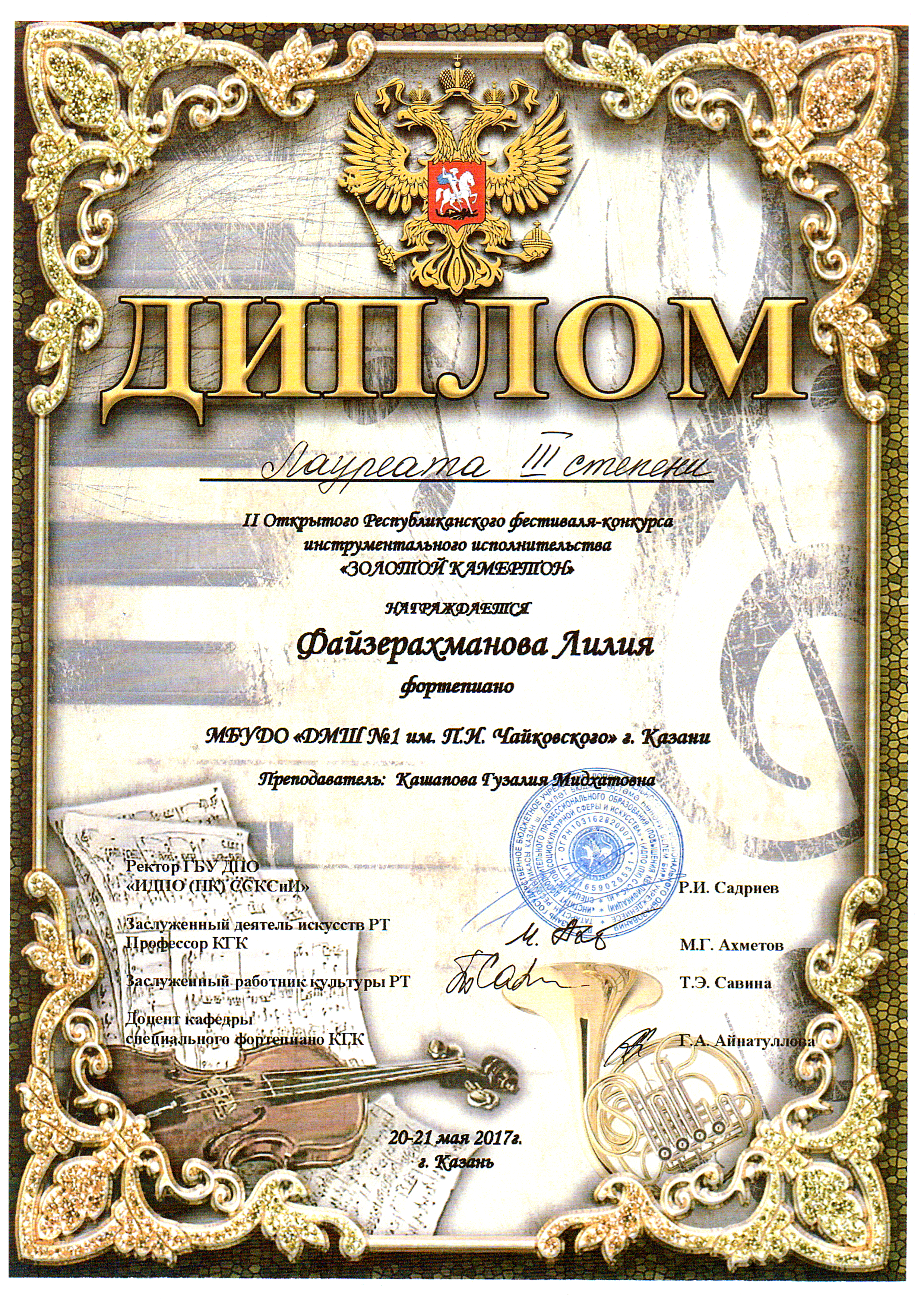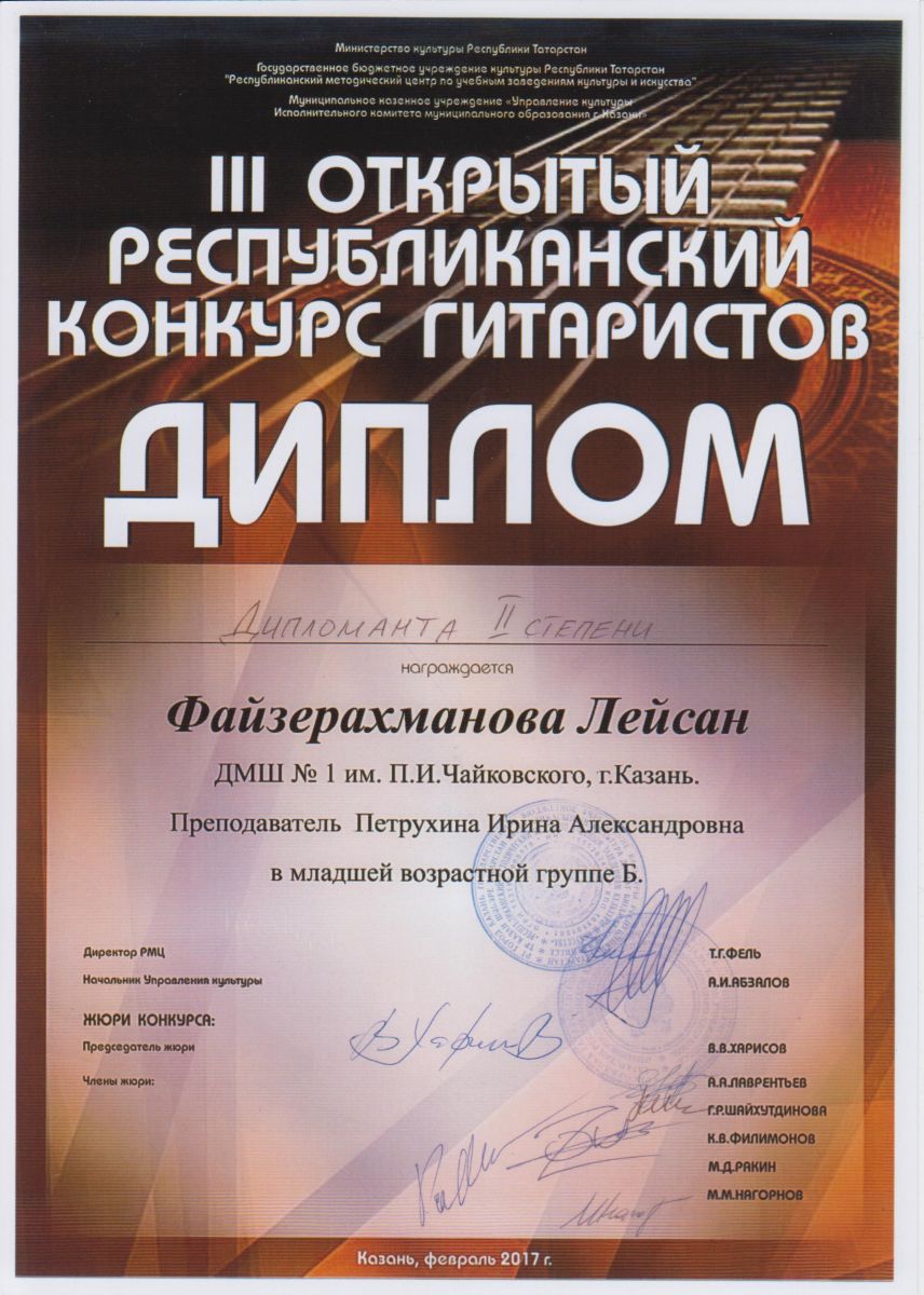 III Открытый Республиканский конкурс гитаристов - Файзерахманова Лейсан, Дипломант II степени;