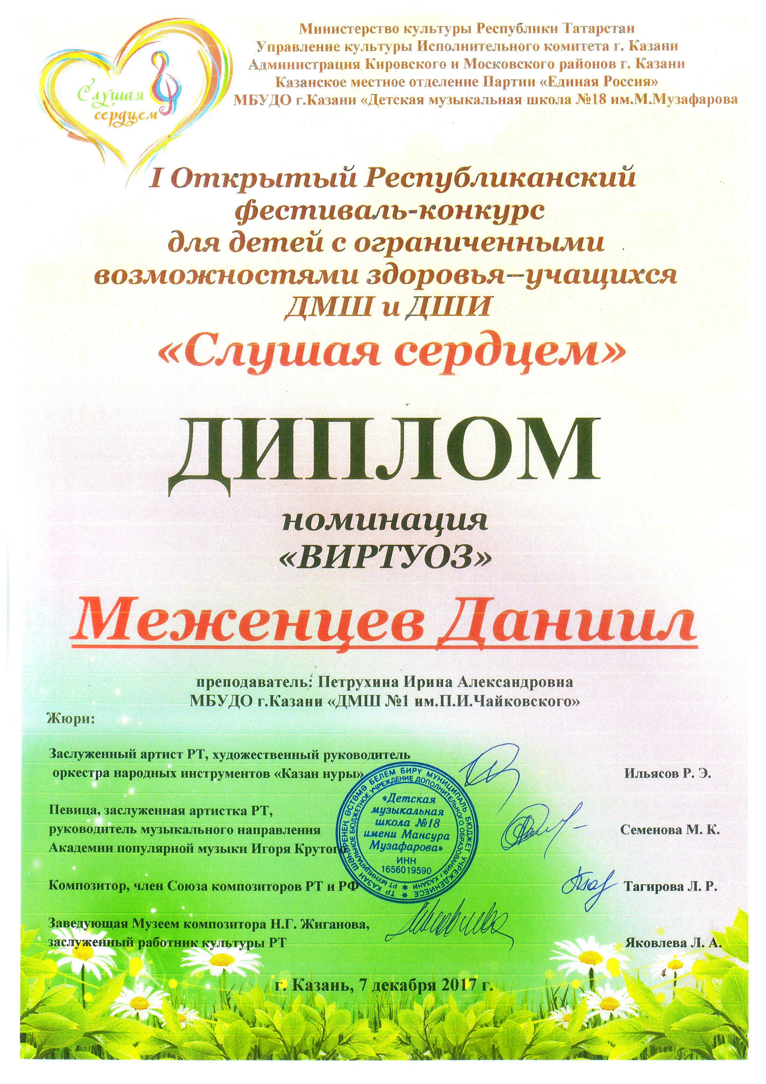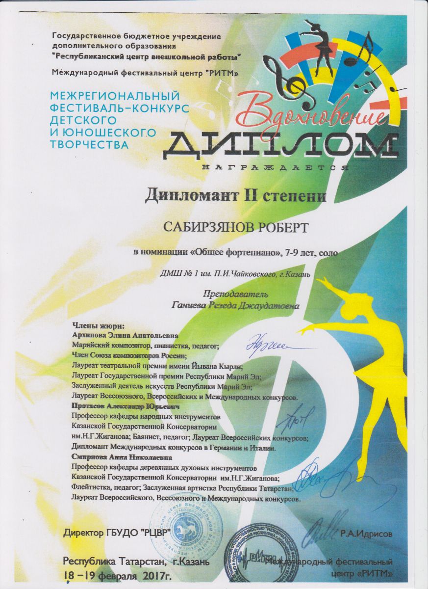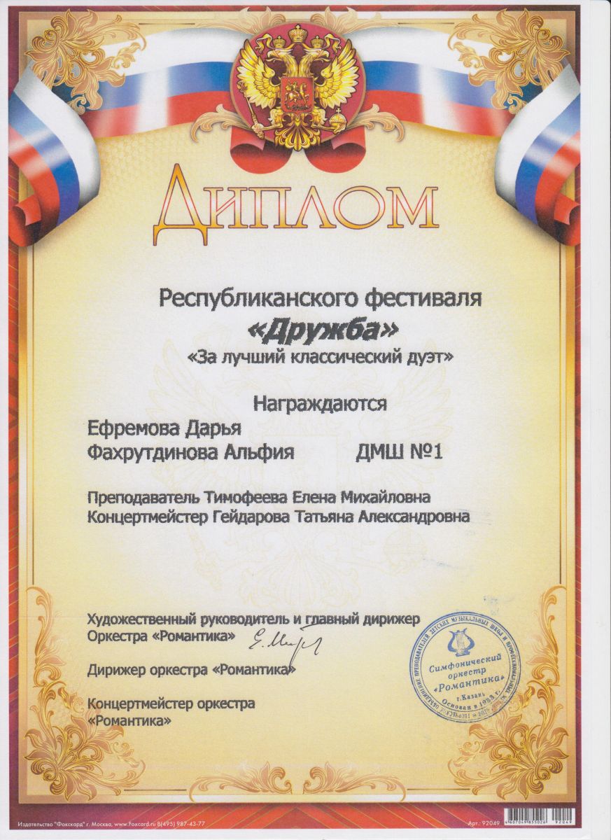 Республиканский фестиваль "Дружба" - Севастьянов Марк, Диплом за исполнение классической музыки;
