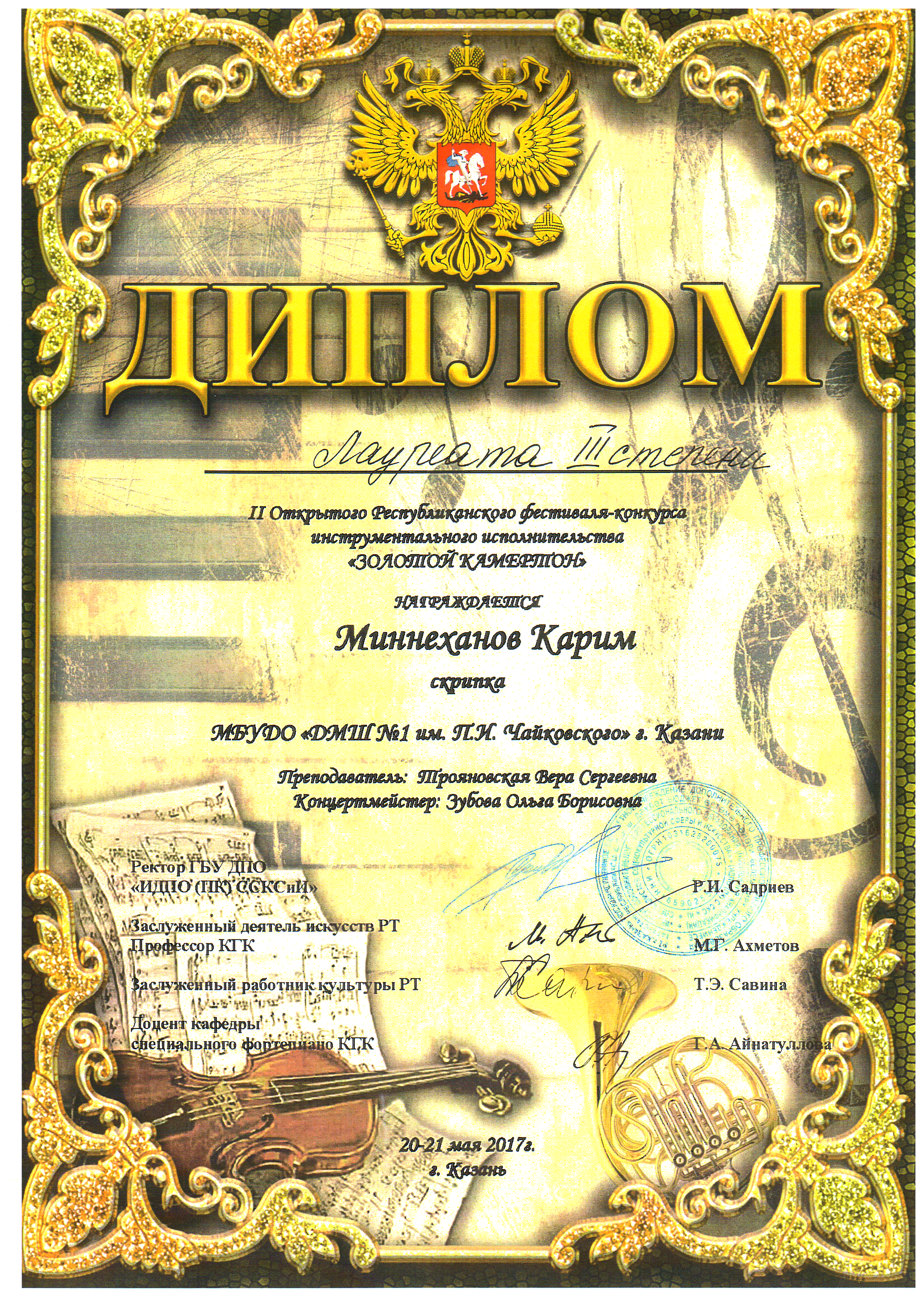 III Открытый Республиканский конкурс гитаристов - Фролов Михаил, Дипломант I степени;
