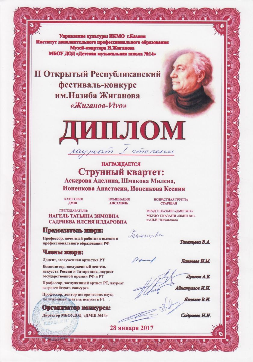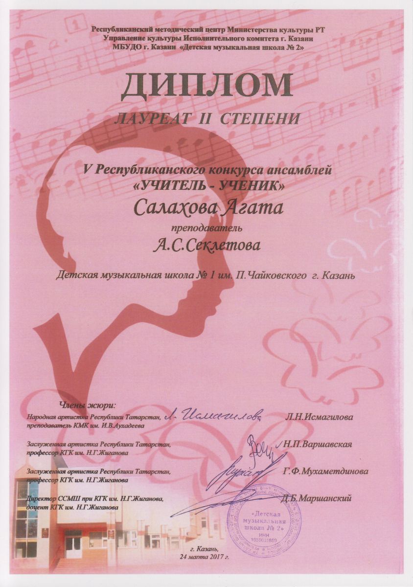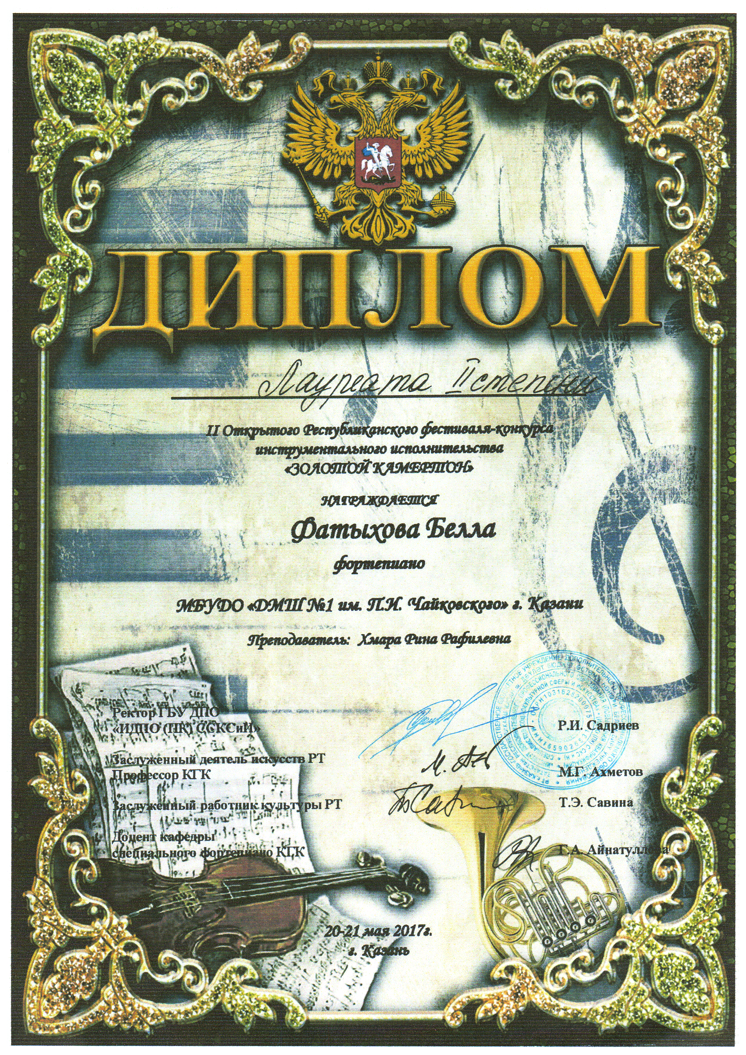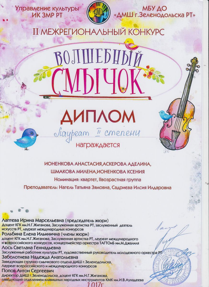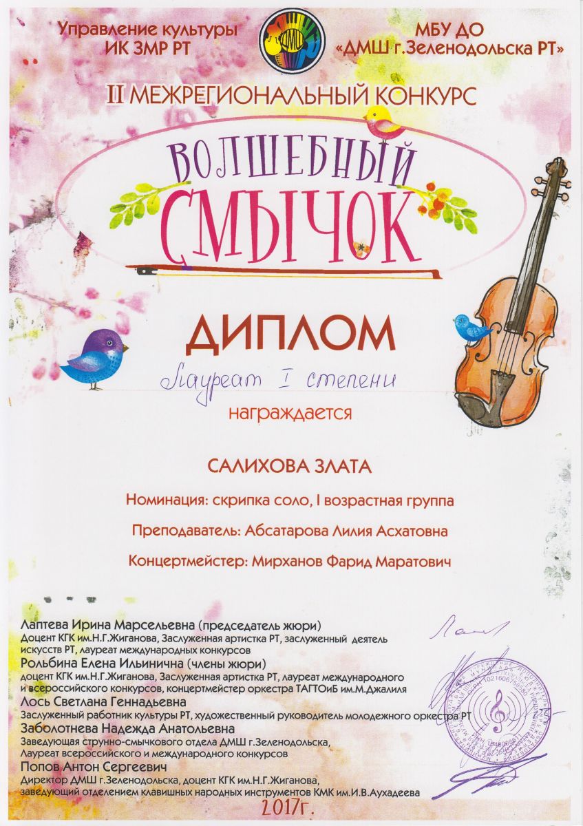 II Межрегиональный конкурс "Волшебный смычок" - Салихова Злата, Лауреат I степени;