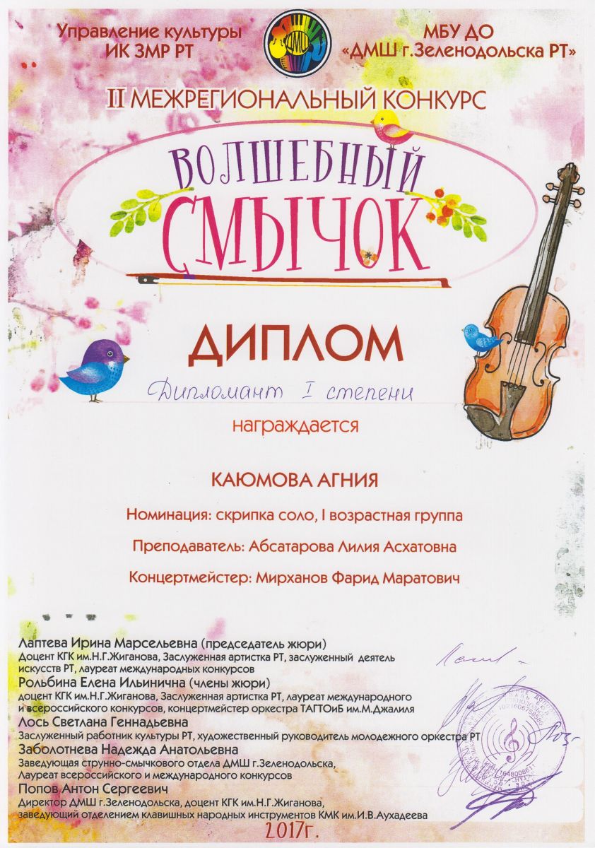 II Межрегиональный конкурс "Волшебный смычок" - Каюмова Агния, Дипломант I степени;