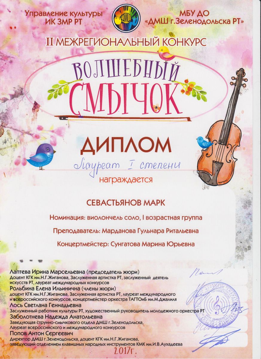 II Межрегиональный конкурс "Волшебный смычок" - Севастьянов Марк, Лауреат I степени;