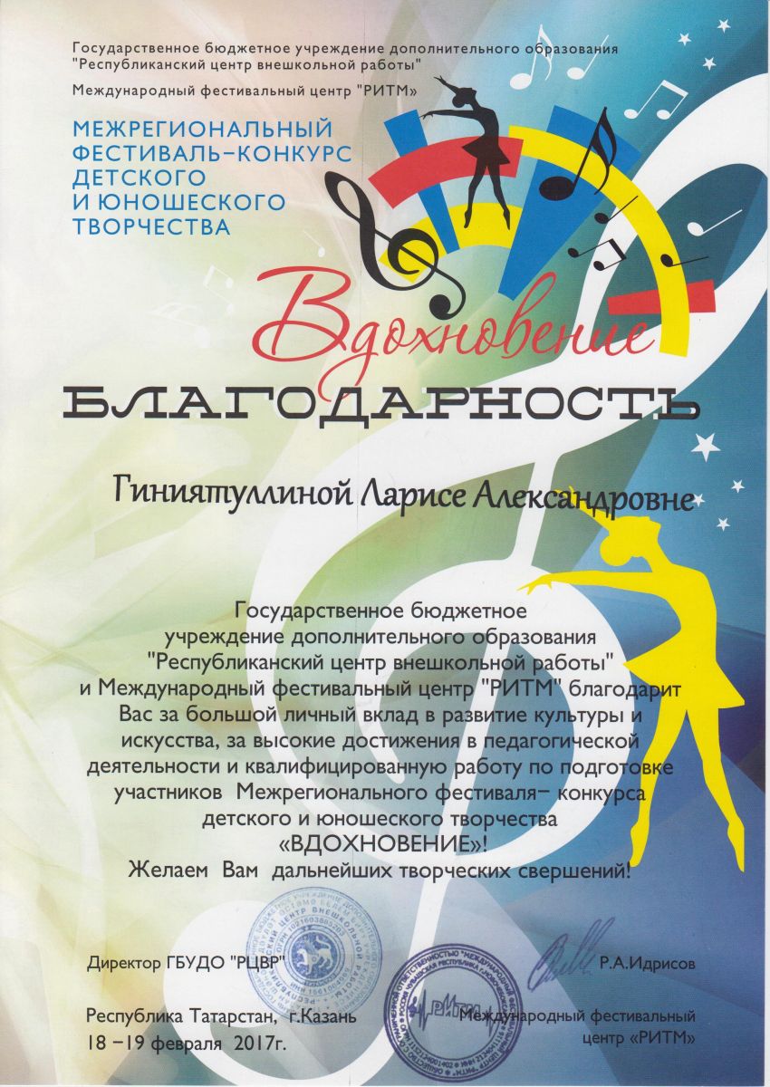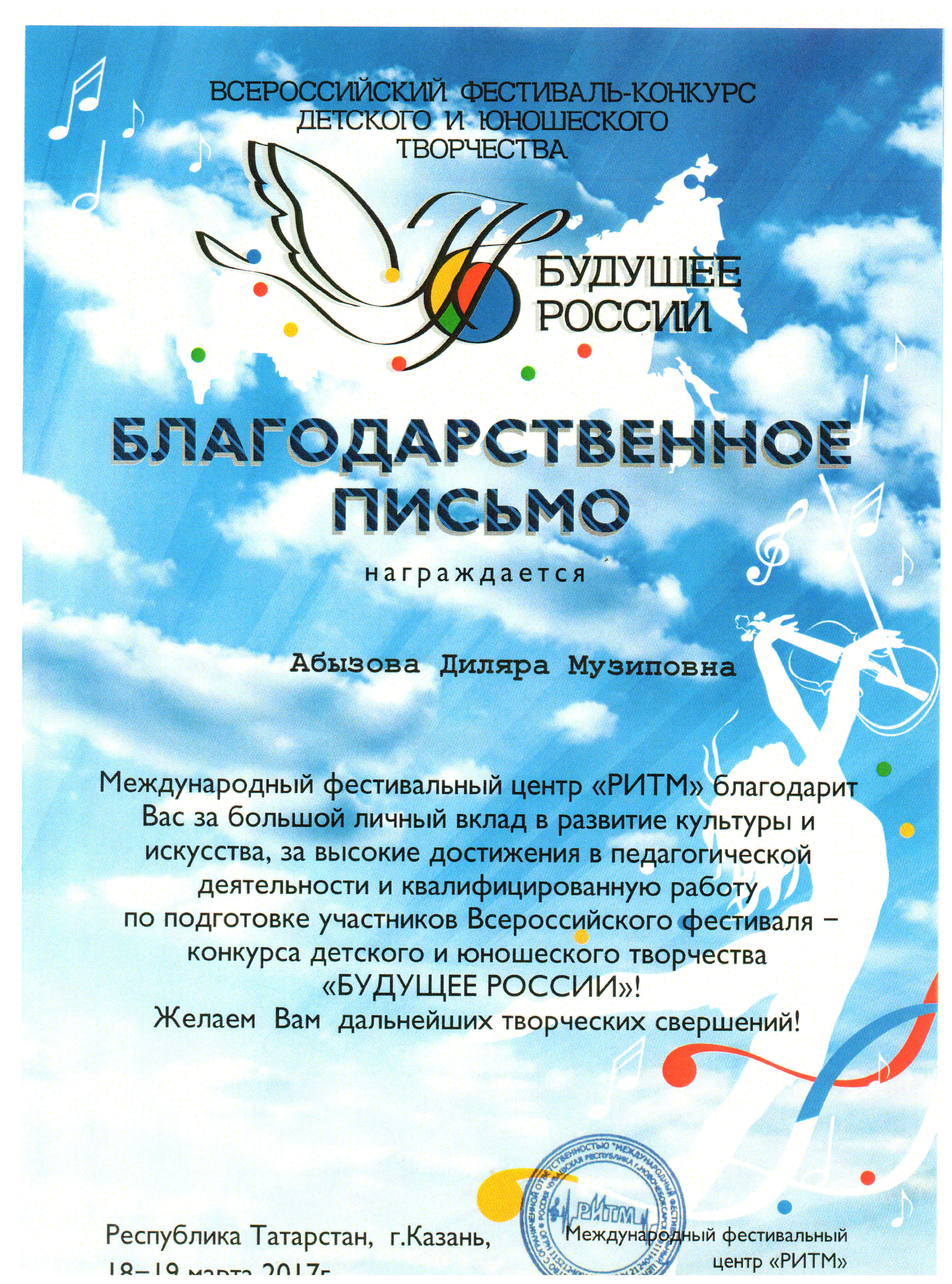 I Республиканский конкурс "Город творчества" - Сунгатова М.Ю., Благодарственное письмо;