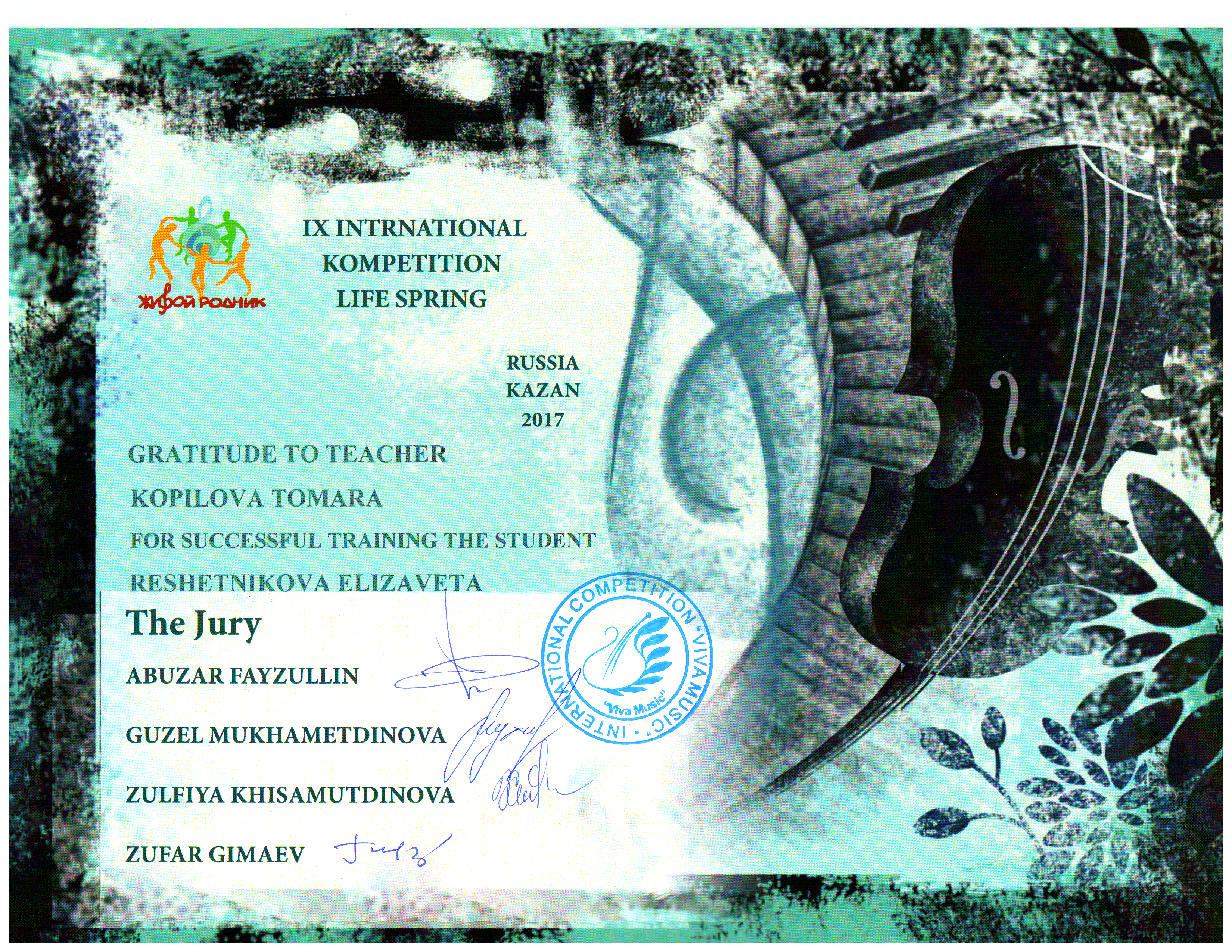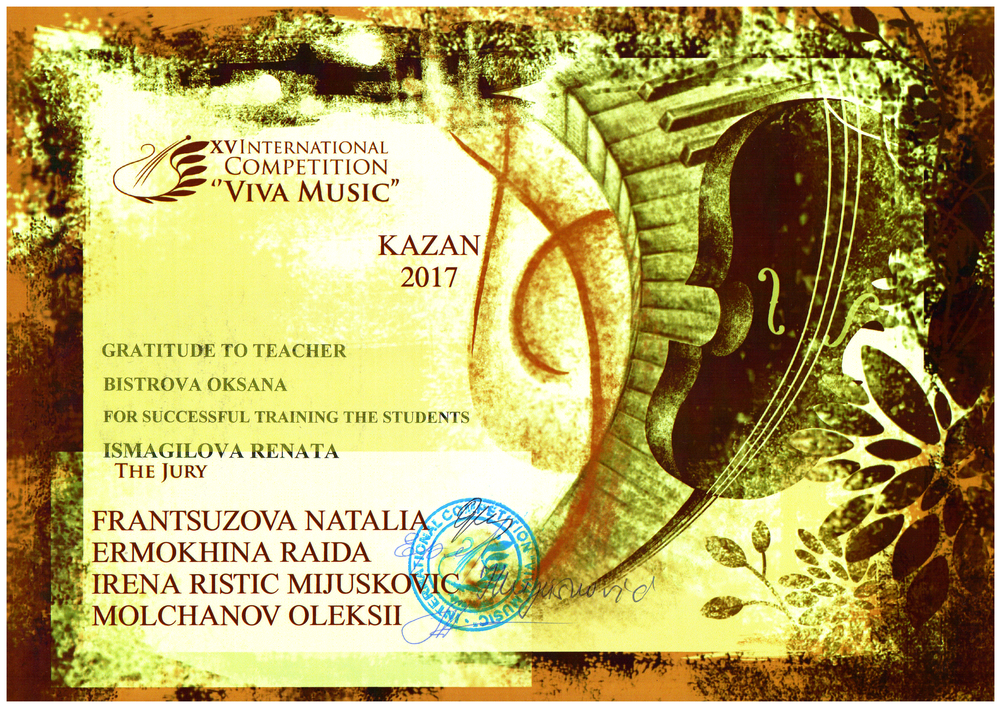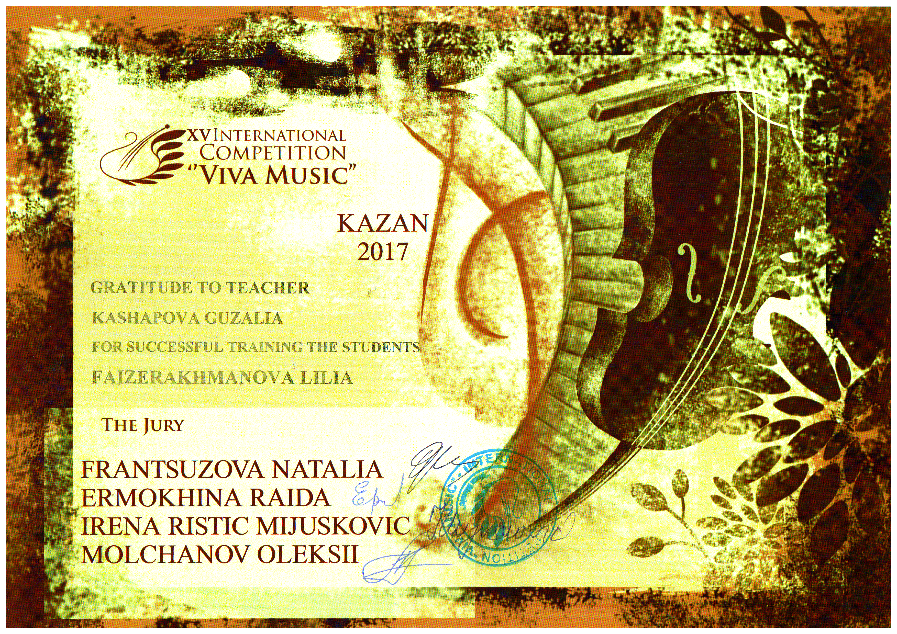 XV Международный конкурс "Viva muzic" - Кашапова Г.М., Благодарность;