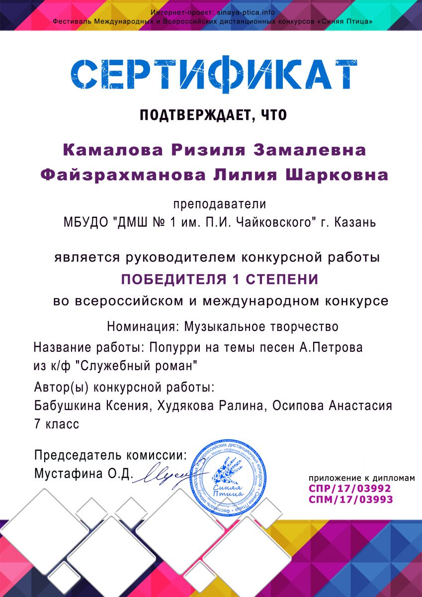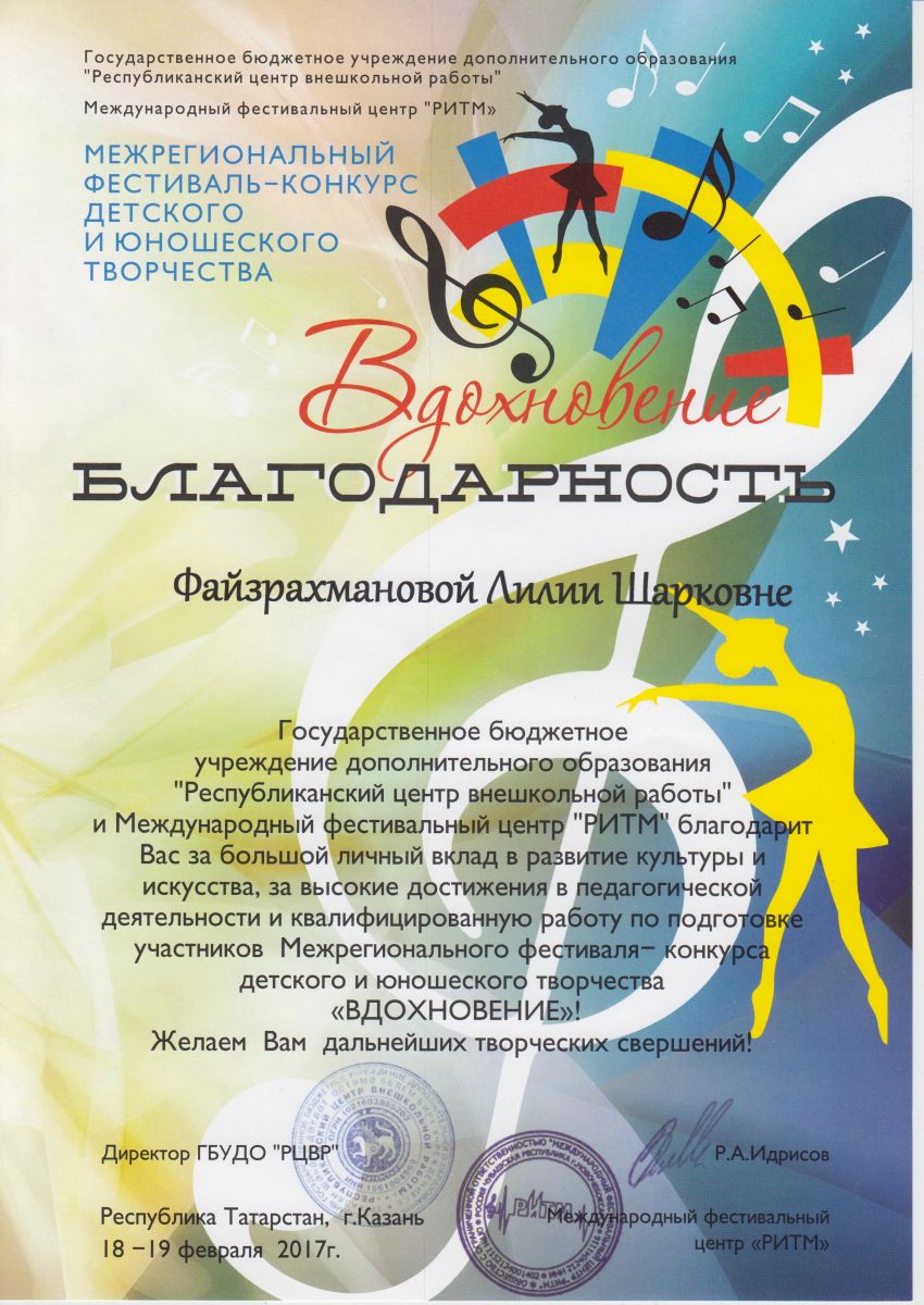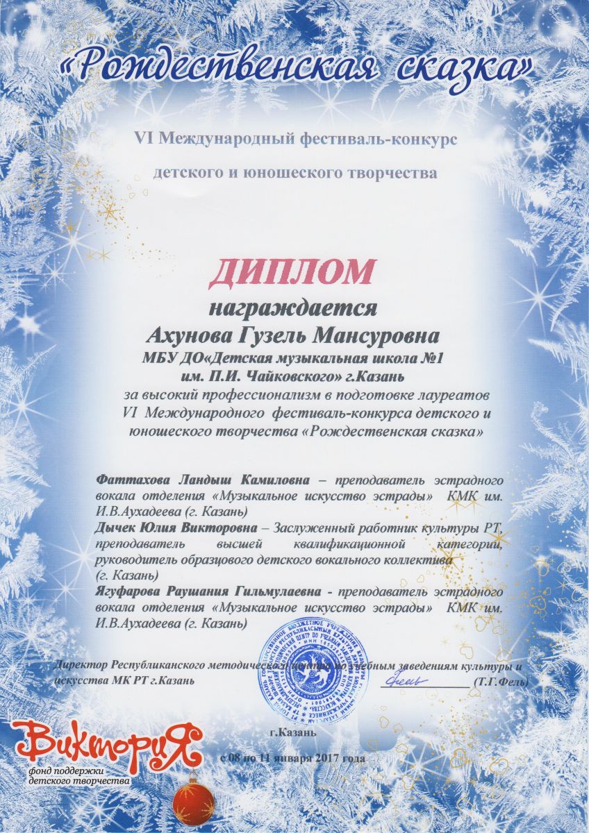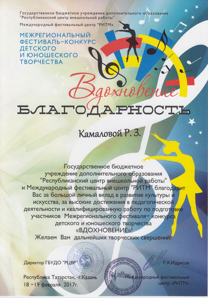 XV Международный конкурс "Viva muzic" - Кашапова Г.М., Благодарность;